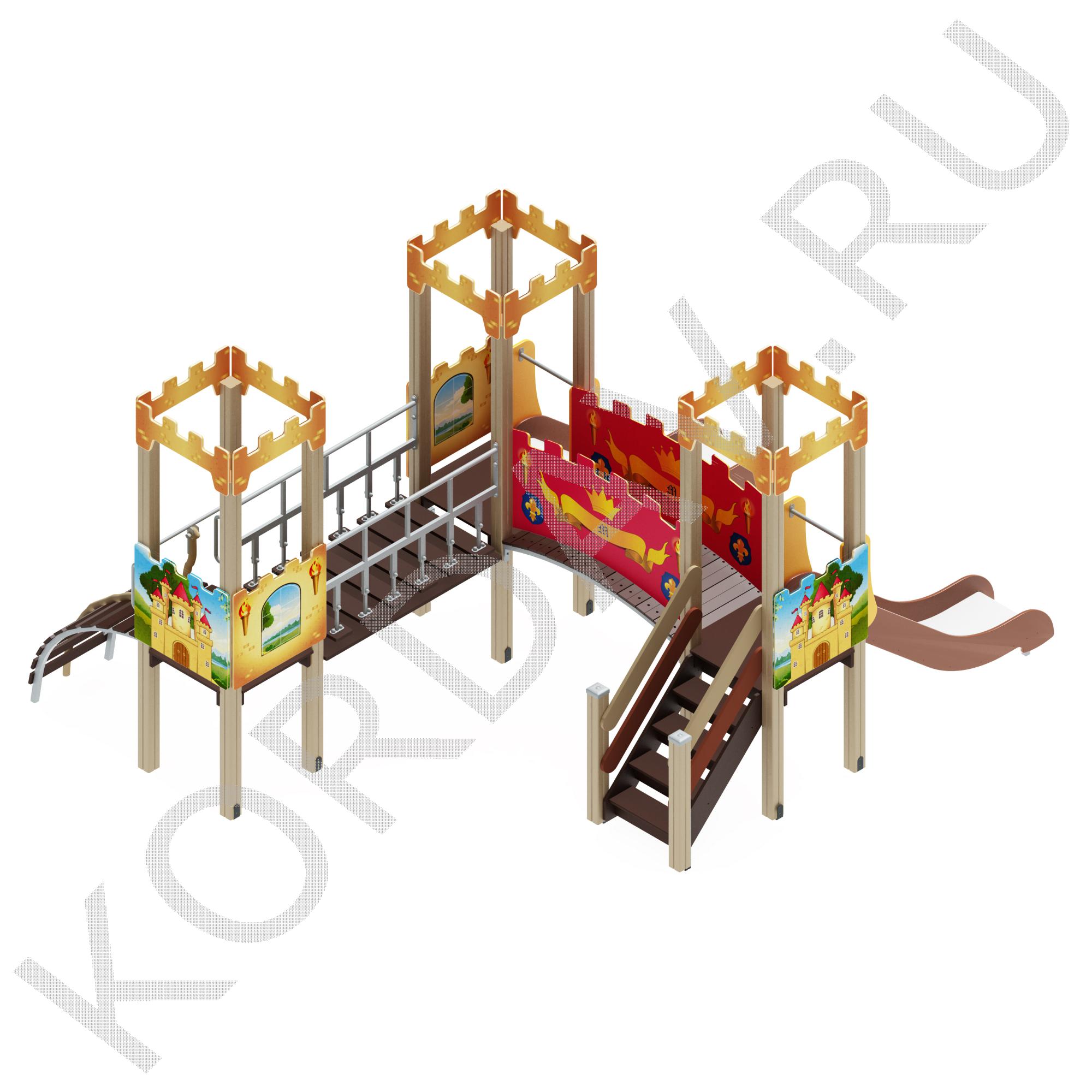 Детский игровой комплекс с трапом – это небольшой сказочный город в своем дворе. В конструкции сочетаются элементы для игры и занятий спортом. Площадки с ограждениями, расположенные на двух уровнях, позволяют детям выбрать занятие по душе. Любителям горок легко подниматься по широким ступенькам. Желоб достаточно широкий, имеет ограждение бортиками. Рядом трап, который дополняет веревка-канат. Все надежно крепится, обеспечивая безопасность на годы.